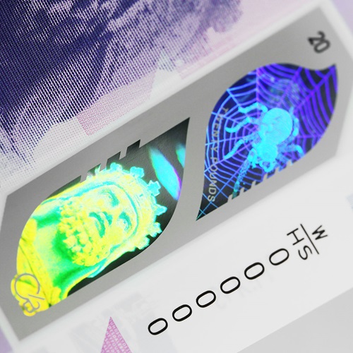 LOOK / FEELLook for microtext and /or tactile features and the clear window(s) Hologram features should show a sense of movement in this case, the spider moves across the web.
